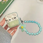 Soft Shell Protective Case For Apple Airpods 1/2/3/4 Pro2 Bluetooth Earphones Ice Transparent Green Flower Design TPU Material