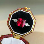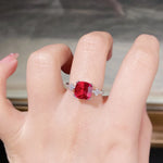 925 Sterling Silver Ring Blood Red Topaz Women's 3 Carat Square Box Red Gem Ruby Square Diamond Ring Luxury Geometry Design