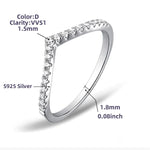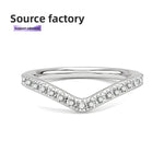 925 Sterling Silver Ring With Micro-Paved Moissanite Women's V-Shape Stackable Ring Versatile Simple Style Diamond Simulated Jewelry