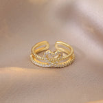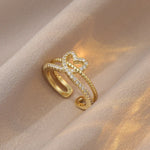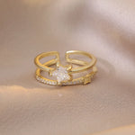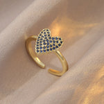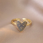 Adjustable Open Ring For Women Simple Fashion Copper Plated Heart Shaped Zirconia Jewelry Geometric Pattern Luxury Style