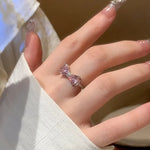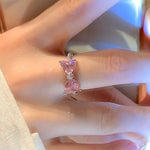 Elegant Pink Diamond Butterfly Knot Ring For Women Unique Design Pink Heart Ring Fashionable Open Hand Ring Sweet Cool Style