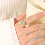 Elegant Rotating Zircon Ring For Women Micro-Set Flower Full Diamond Heart Shaped Jewelry Fashionable Minimalist Style Alloy Copper
