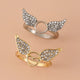 Fashionable Minimalist Flying Wings Ring Trendy Gold Silver Diamond Embedded Lover's Matching Rings Zinc Alloy Unisex