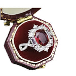High-End 3 Carat Artificial Ruby Ring Stylish Open Design Elegant Simple Geometric Pattern Retro Style Women's Fashion Jewelry