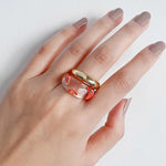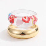 Kenge Fruit Themed Resin Amber Rings Set For Women Soft Clay European Style Ring Combination Bohemian Floral Print Alloy Jewelry