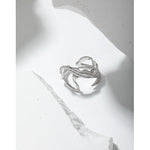 Minimalist Cold Tone Irregular Surface Texture S925 Pure Silver Hollow Open Ring For Women Geometric Pattern Design