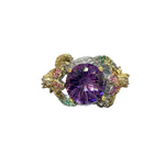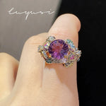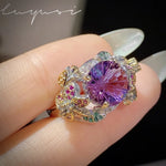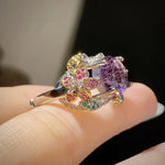 New Italian Dual-tone Gold Craft Handcrafted Firework Cut Purple Diamond Ring Women Colorful Flower Gemstone Ring Bohemian Style
