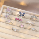 Women's Butterfly Knot Heart Ring Stackable Water Ripple Cross Open Finger Ring New Style Zirconia Jewelry Accessory
