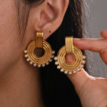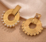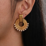 Spec: A Pearl and Hoop Stud Earrings (Gold)【Needle Thickness: 0.8mm】