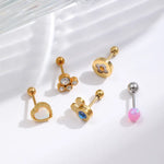 1 Piece Simple Style Commute Geometric Four Leaf Clover Heart Shape Inlay 304 Stainless Steel Acrylic Natural Stone Zircon 18K Gold Plated Ear Studs
