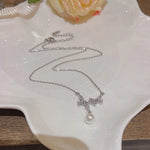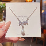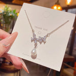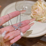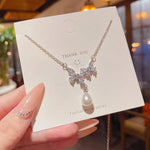 Elegant Butterfly Pearl Necklace Women's Fashionable Zircon Accessory Choker Tiara Luxury Pendant Versatile Travel Graduation Selfie
