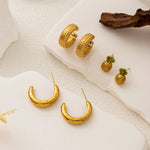 Elegant Versatile Hoop Earrings For Women Fashionable Minimalist Design Gold Plated Stainless Steel Zirconia Stones Holiday Travel Daily Wear