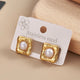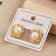 Geometric Pearl Electroplated 304 Stainless Steel Ear Studs Fashionable Polished Hollow Out Design For Casual Wear Women's Jewelry