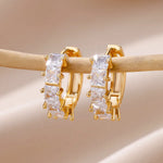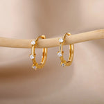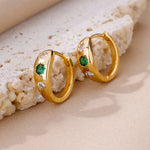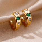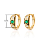 Gold Plated Green Zirconia Crystal Round Women's Earrings Sparkling Minimalist Geometric Ear Jewelry Suitable For Daily Commuting And Gift Giving