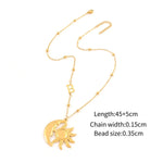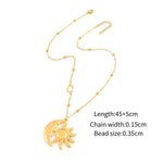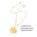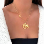 Gold Plated Sun And Moon Initial Pendant Necklace Stainless Steel Ball Clasp For Women Casual Classic Style Four Seasons Suitable