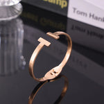 Modern Style British Style Geometric Solid Color Titanium Steel 18K Gold Plated Bangle In Bulk
