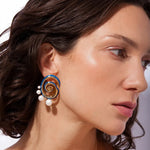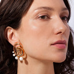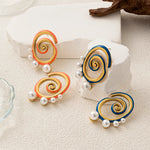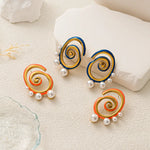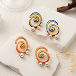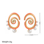Spiral Pearl Pendant Earrings Irregular Design Stainless Steel 18K Gold Plated Fashion Artistic Women's Holiday Travel Jewelry
