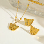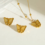 Stainless Steel 18K Gold Plated Butterfly Pendant Necklace And Earrings Set Geometric Pattern Casual Cute Artistic Design For All Seasons