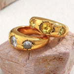 Stainless Steel 18K Gold Plated Three Zircon Stones Ring Simple Geometry Fashionable All-Match Style For Travel Universal Season