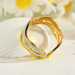 Ring Size: Adjustable Pattern: Waves Plating Material: 18K Gold Plated Gold Plating Process: Ion Plating (IP) Craft: Waterproof Non Tarnish,Wave,Enamel Color: Sky Blue,White,Yellow Occasion: Casual,Daily,Date Gender: Women's Quantity: 1 Piece Material: 304 Stainless Steel Classification:...