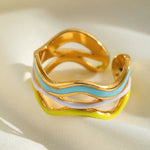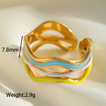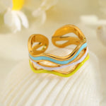 Wholesale Jewelry Basic Sweet Commute Waves 304 Stainless Steel 18K Gold Plated Wave Enamel Rings