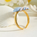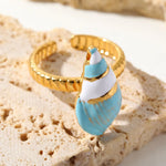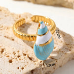 Ring Size: Adjustable Pattern: Conch Plating Material: 18K Gold Plated Gold Plating Process: Ion Plating (IP) Craft: Waterproof Non Tarnish,Conch Color: Sky Blue,White,Gold Occasion: Casual,Daily Gender: Women's Quantity: 1 Piece Material: 304 Stainless Steel Classification:...