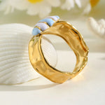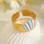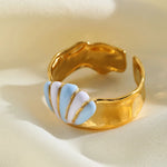 Wholesale Jewelry Basic Vacation Enamel Shell 304 Stainless Steel 18K Gold Plated Enamel Shell Rings