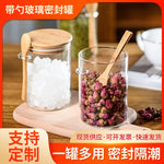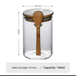Glass Sealed Jar with Lid Storage Jar with Wooden Spoon Grain Dried Fruit Storage Jar Kitchen Storage Glass Sealed Bottle