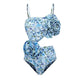 European Style Beach Vacation One Piece Swimsuit Women's Decorative Floral Hollow Out Neck Hanging Design Quick Dry Nylon Fabric