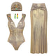 High Waist Bikini Set Women's V-Neck Folded Bright Surface Swimsuit Two-Piece Swimwear Nylon Quick Dry Solid Color Swimming Suit