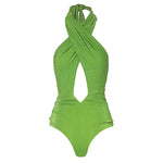 Sexy Deep V One Piece Swimsuit Women's Flash Fabric Set New Style Quick Dry Nylon Solid Color Swimwear