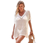 Summer New Women's Beach Dress Loose Sexy Knitted Hollow V-neck Swimsuit Cover-up Three-quarter Sleeve Pure Color A-line Sweater