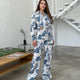 Casual High Waist Wide Leg Pants Women's Printed Set Loose Top Bottoms Fashionable Style Long Sleeve