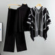 Casual Knitted Three-Piece Set For Women Autumn Winter Leisure Style Wide Leg Pants Shawl Coat Elegant Lazy Fashion Trend