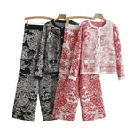 Classic Early Autumn Knitted Long Sleeve Open Cardigan Wide Leg Pants Two Piece Set Craftsmanship Ink Print Elegant Women's Fashion Casual Wear