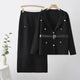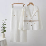 Comfortable Knitted Long Sleeve B-Style Waist-Cinching Midi Skirt Set For Women With Maze Pattern Double-Breasted Turn-down Collar