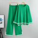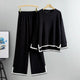 Elegant Color Block Long Sleeve Knitted Set High Waist Slim Wide Leg Pants Two Piece Suit Autumn Winter New Arrival Casual Wear