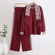 Elegant High Waist Knitted Set Autumn Winter Wide Leg Pants With Plaid Scarf Ensemble Casual Fashion Outfit For Women