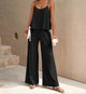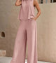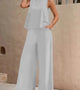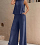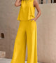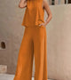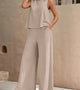 Elegant Pure Color Two-Piece Set With Round Neck Vest And Wide Leg Pants Organic Cotton And Polyester Blend Casual Women's Outfit