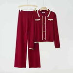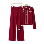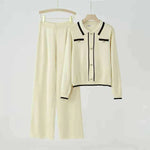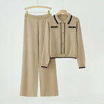 Fall Fashion Casual Knitted Long Sleeve Shirt And Wide Leg Pants Two Piece Set For Women Elegant Commute Style Polyester Fabric
