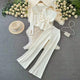 Fashionable New Style Women's Knitted Long Sleeve Collared Set Three Pieces Vest High Waist Straight Leg Pants Casual Outfit