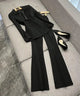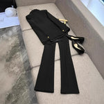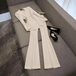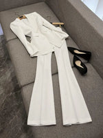 Fashionable Star Style One Button Cloth Button Midi Suit Plus Flared Pants Two Piece Set Casual Outfit