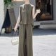 French Elegant Fashion Set Women's Sleeveless Wide Leg Pants Two-Piece Suit Summer New Style Age-Defying Casual Leisure Outfit