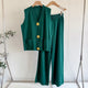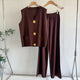 Gold Button V-Neck Knitted Vest And Loose Pants Two-Piece Set For Women Casual Comfortable Fashionable Street Style