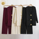 Metal Button Knitted Open Cardigan And Wide Leg Pants Two Piece Set Elegant Style Long Sleeve Pure Color Casual Fashion