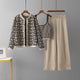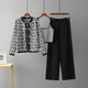 Russian Autumn Winter French Style Knitted Cardigan With Letter Embroidery Double Buttoned Color Block Long Pants Set For Women
