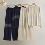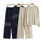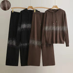 Soft Cozy Casual Knitted Set Women's Autumn Winter New Hooded Sweatshirt Wide Leg Pants Two Piece Set Fashionable Comfortable