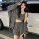 Sporty Casual Women's Three-Piece Set Fitness Running Fashion Anti-Aging Sweatshirt Shorts Outfit Polyester Chiffon Bubble Sleeve