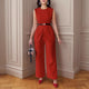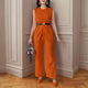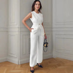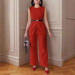 Spring Casual Women's Fashion Top And Waist Belt Sleeveless Pure Color Two-Piece Set Long Pants Stylish Leisure Ensemble