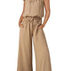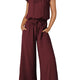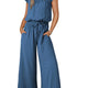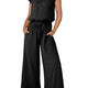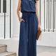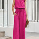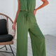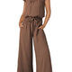 Spring Summer Women's Folded Collar One-Piece Suit Pocket Pure Color Sleeveless Pleated Wide Leg Pants Street Style High Street